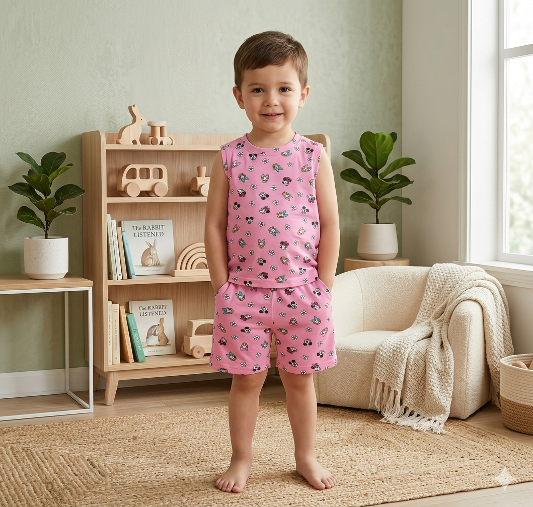 Keep your little one cool and stylish with this premium sleeveless co-ord set, made from soft and breathable cotton fabric. The sleeveless top and matching shorts create a trendy and comfortable outfit perfect for everyday wear. Designed for active kids, the lightweight fabric allows easy movement while keeping them comfortable all day long.